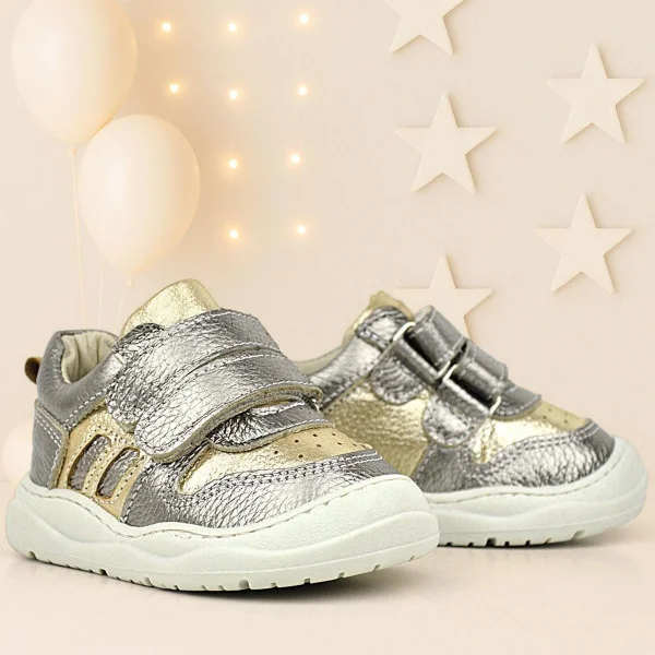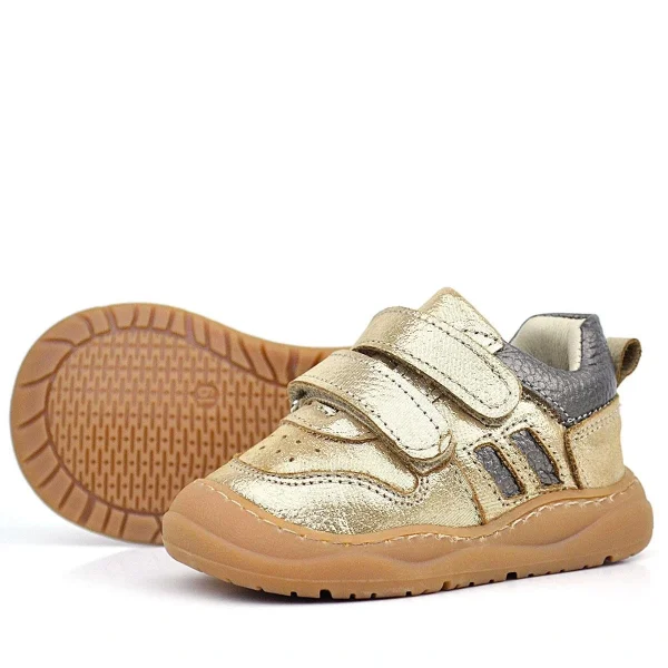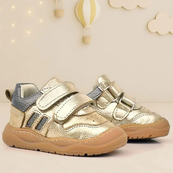Rakerplus Schaggy Hakiki Deri Altın Parlak Bebek Spor Ayakkabı