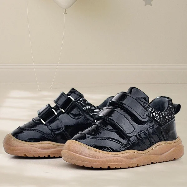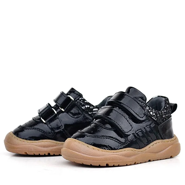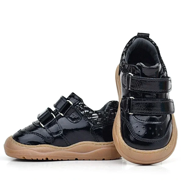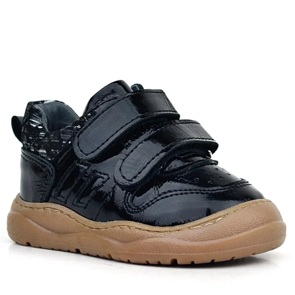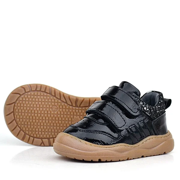 Rakerplus Schaggy Hakiki Deri Parlak Siyah Bebek Spor Ayakkabı