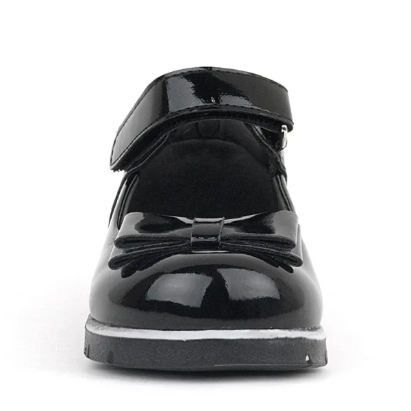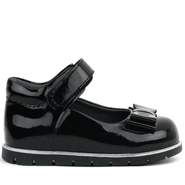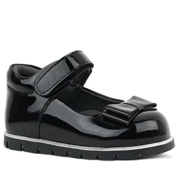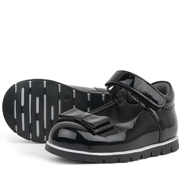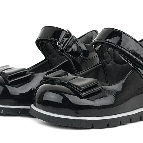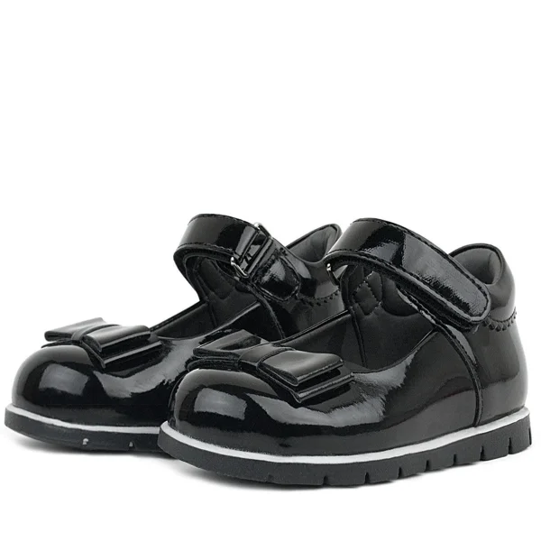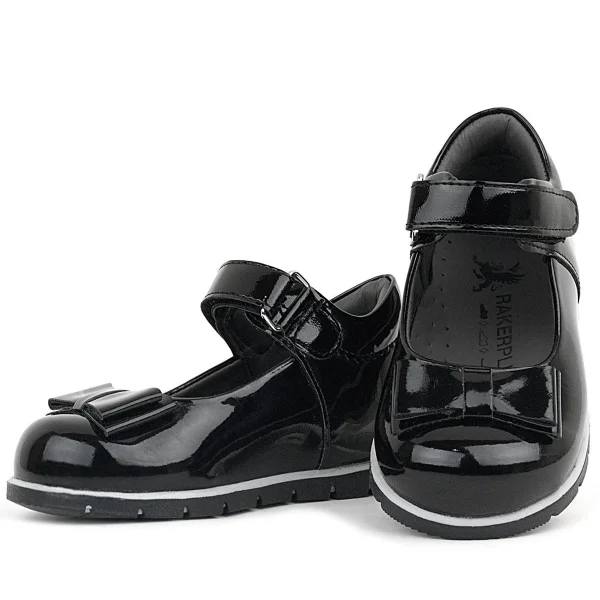 Rakerplus Siyah Rugan Fiyonklu Kız Bebek Babet Ayakkabı
