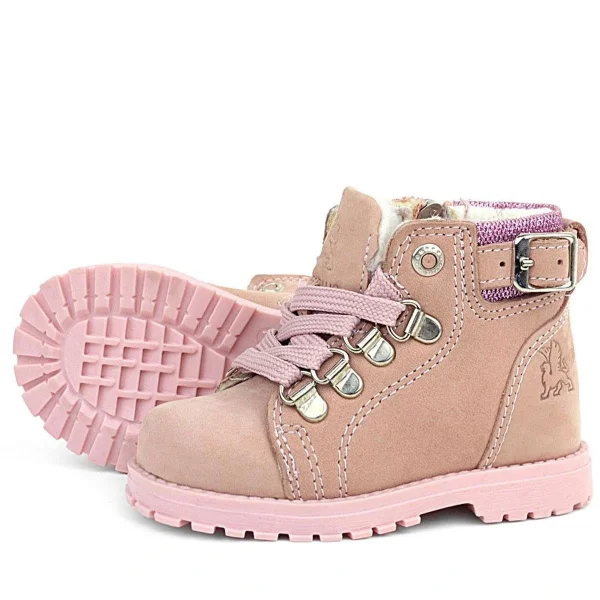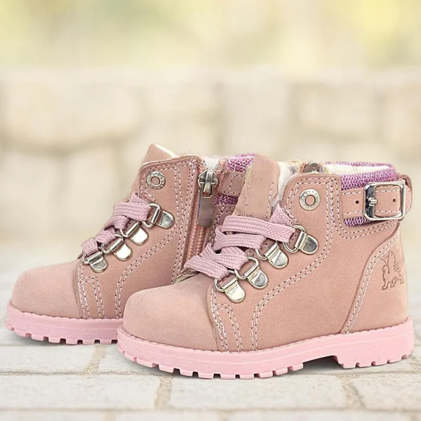 Rakerplus Griffon Hakiki Deri Pembe Simli Fermuarlı Kız Bebek Bot