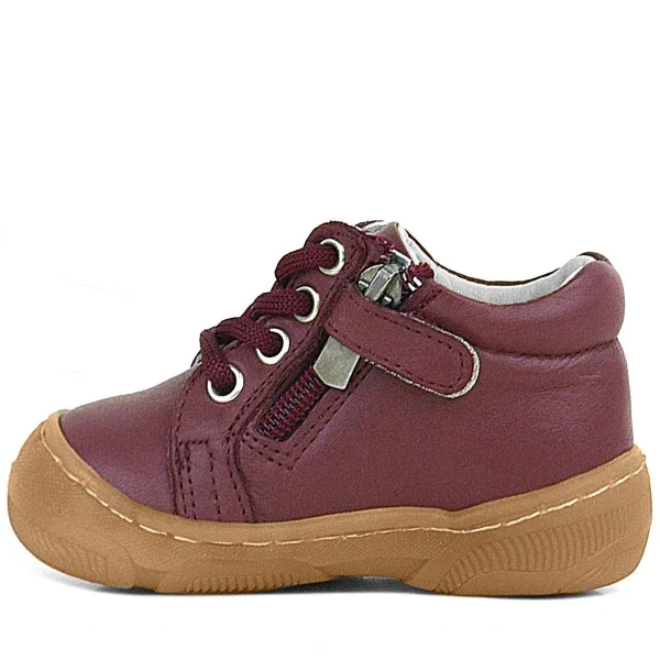 Anatomik Yumuşak Hakiki Deri Fermuarlı Bordo Bebek Bot Ayakkabı