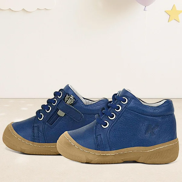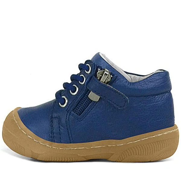 Anatomik Yumuşak Hakiki Deri Fermuarlı Lacivert Bebek Bot Ayakkabı