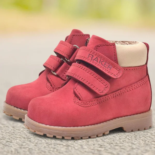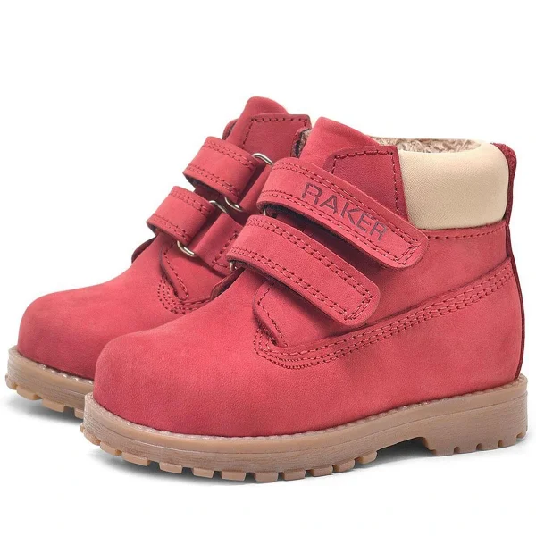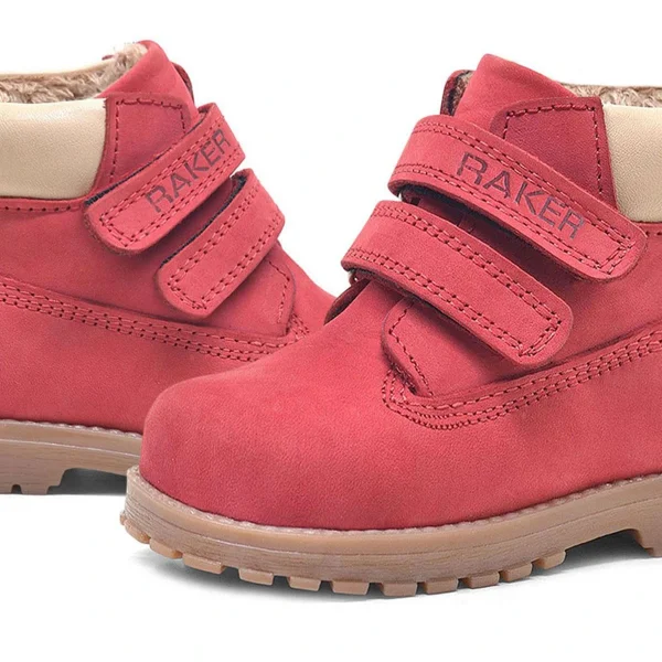 Rakerplus Neson Hakiki Deri Kırmızı Cırtlı Çocuk Bot