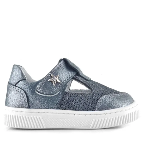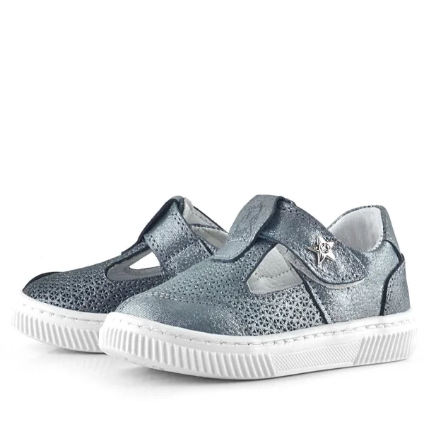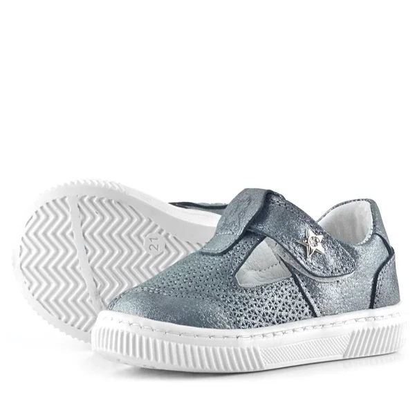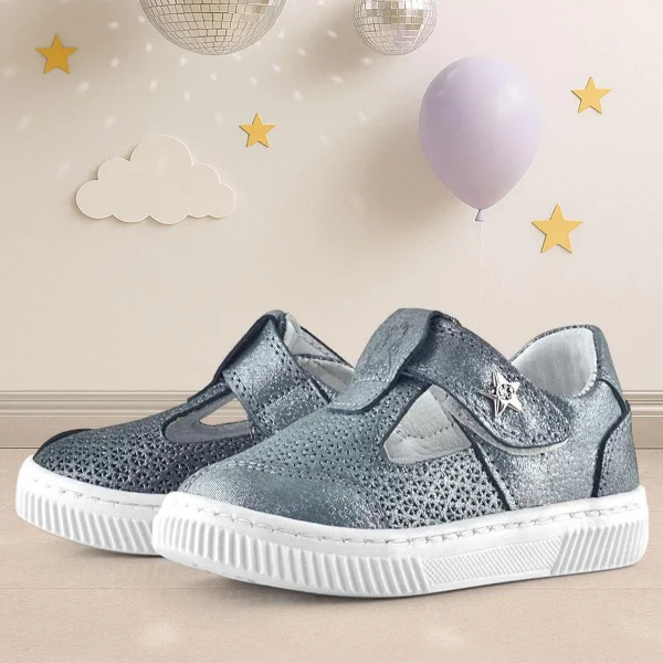 Rakerplus Bheem Hakiki Deri Gümüş Simli Cırtlı Yıldız Detaylı Bebek Sandalet