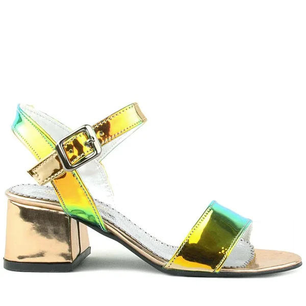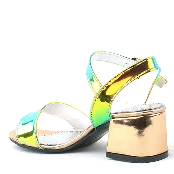 Pony Hologram Bakır-Yeşil Kalın Topuklu Kız Çocuk Abiye Ayakkabı