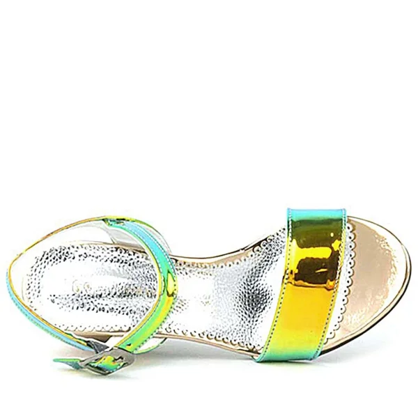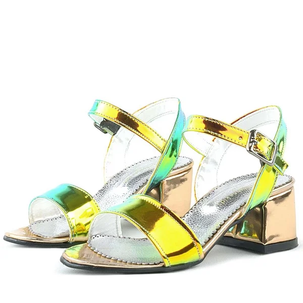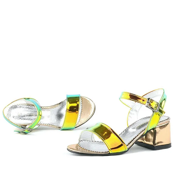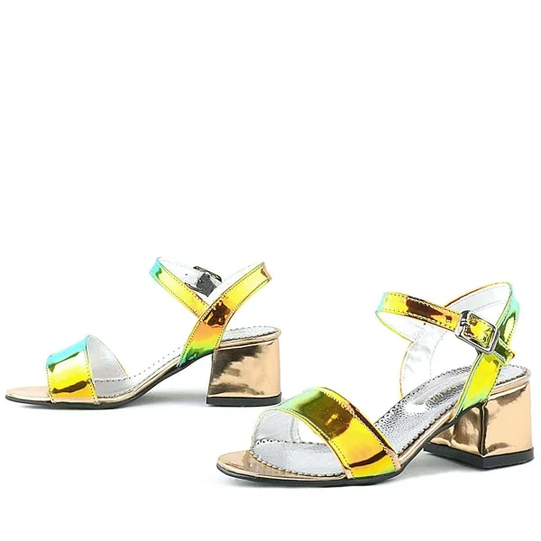 Pony Hologram Pembe-Sarı Kalın Topuklu Kız Çocuk Abiye Ayakkabı