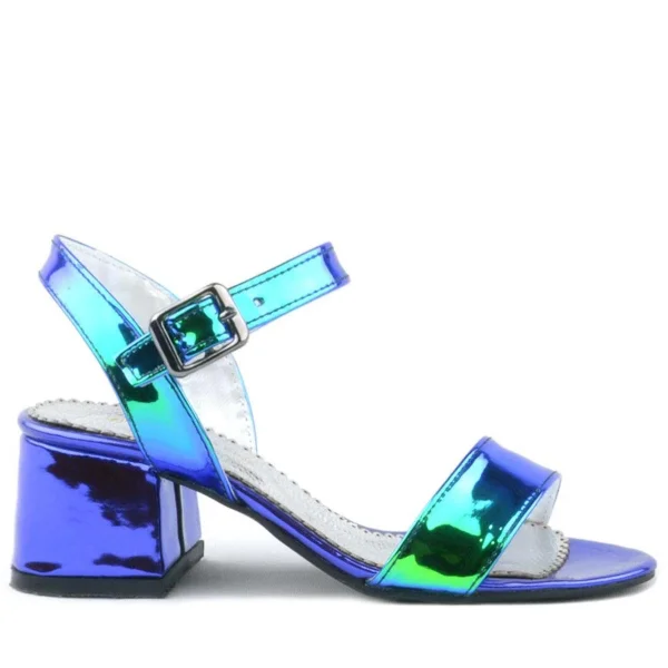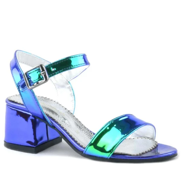 Pony Hologram Mor-Yeşil Kalın Topuklu Kız Çocuk Abiye Ayakkabı