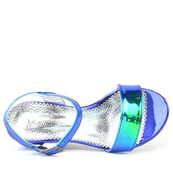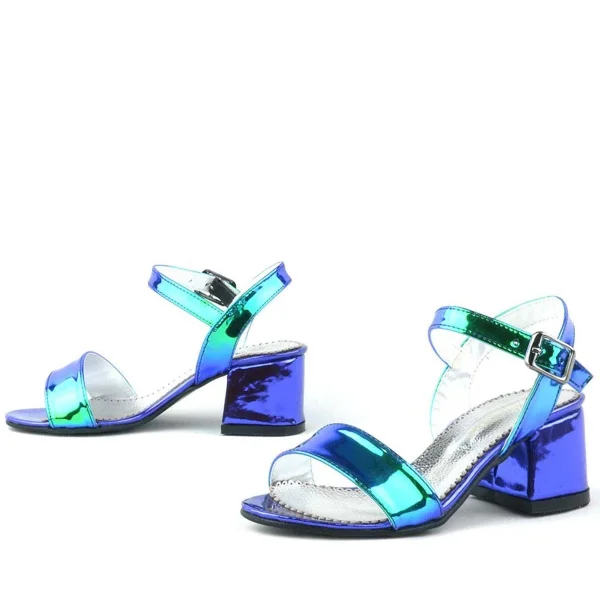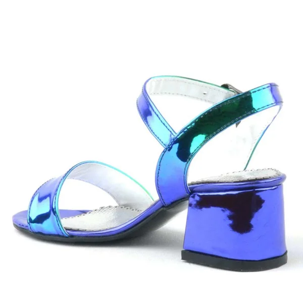 Elsa Mavi Rugan Simli Kalın Topuklu Kız Çocuk Abiye Ayakkabı