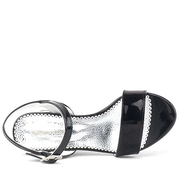 Elsa Siyah Rugan Simli Kalın Topuklu Kız Çocuk Abiye Ayakkabı