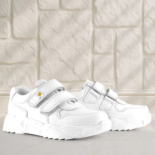 Hakiki Deri Beyaz Cırt Cırtlı Leopar Desenli Kız Çocuk Spor Ayakkabı