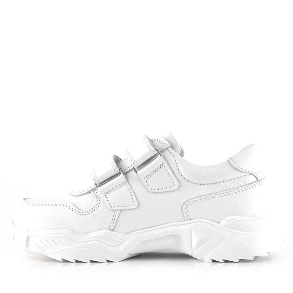 Hakiki Deri Beyaz Cırt Cırtlı Siyah Desenli Kız Çocuk Spor Ayakkabı