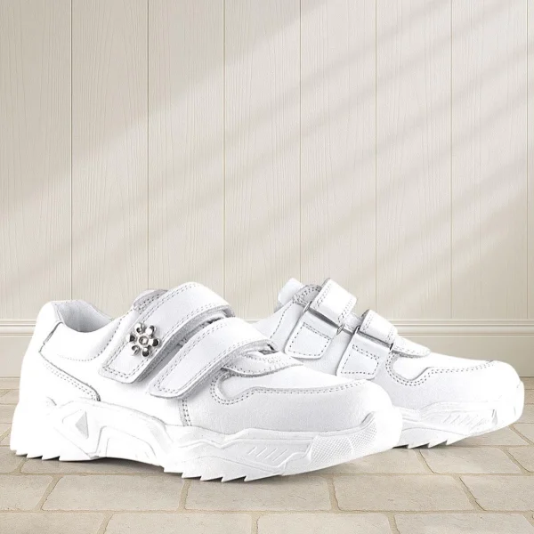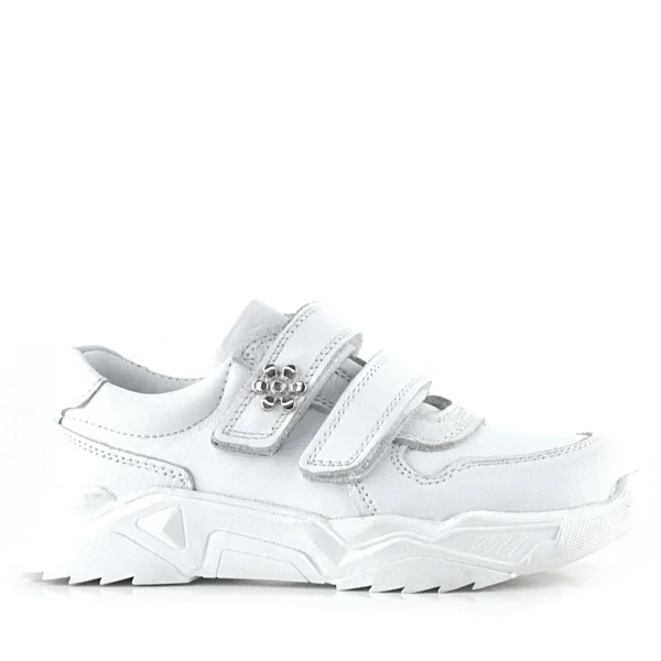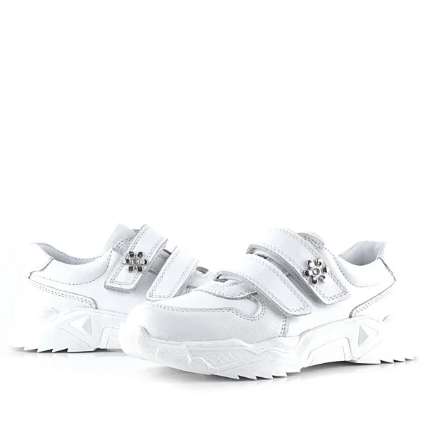 Rakerplus Hakiki Deri Beyaz Çiçek Detaylı Kız Çocuk Spor Ayakkabı