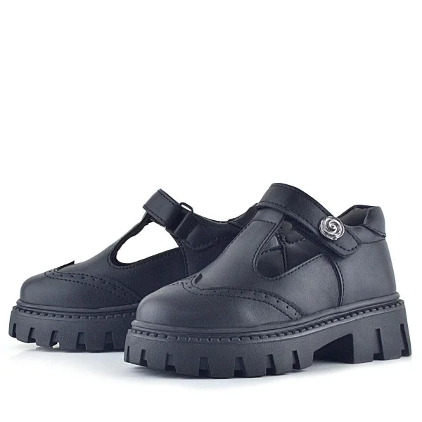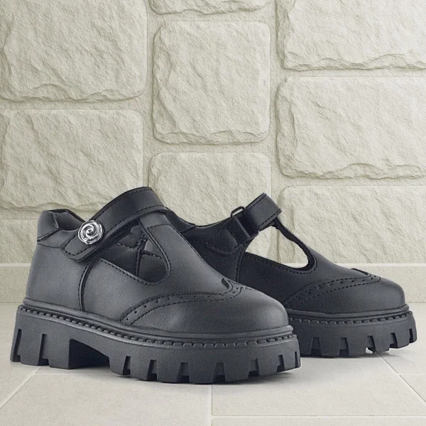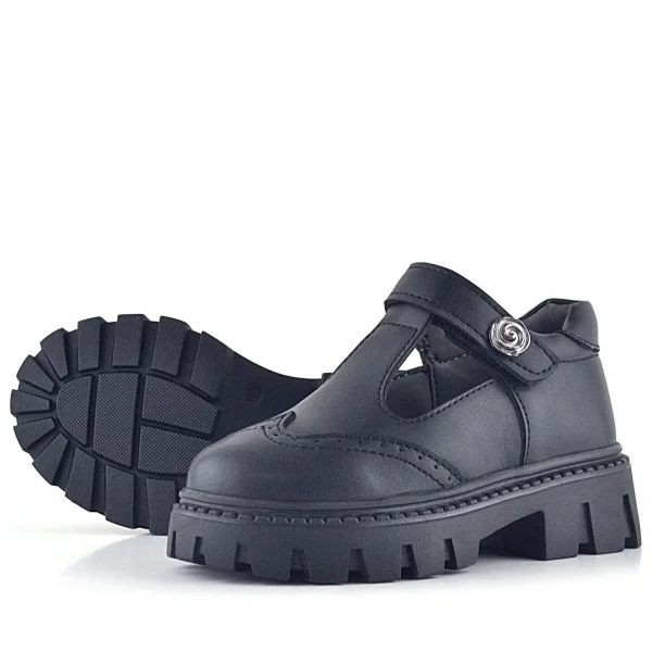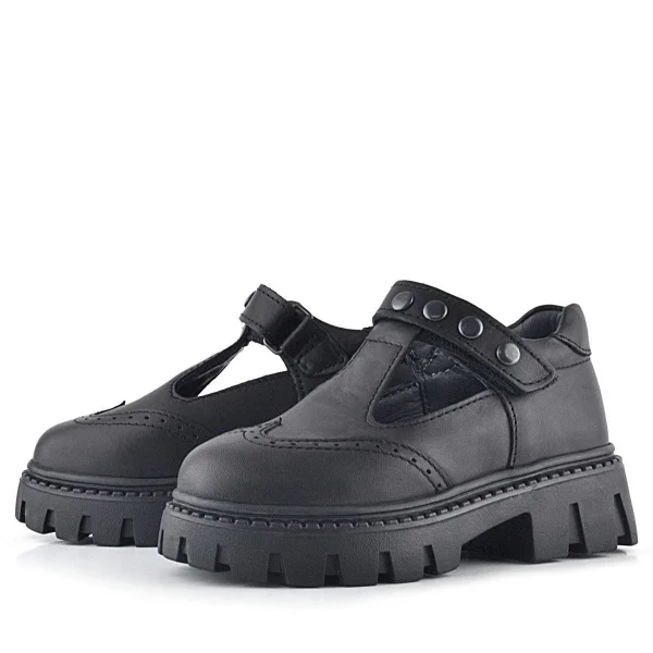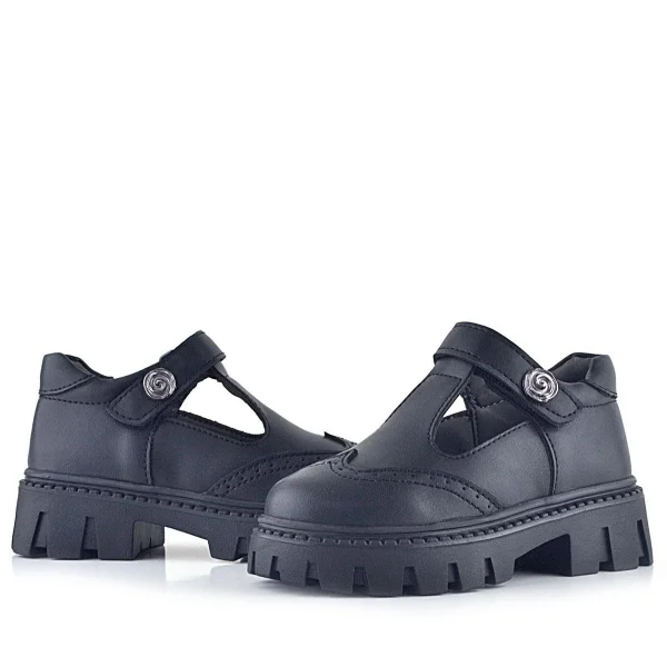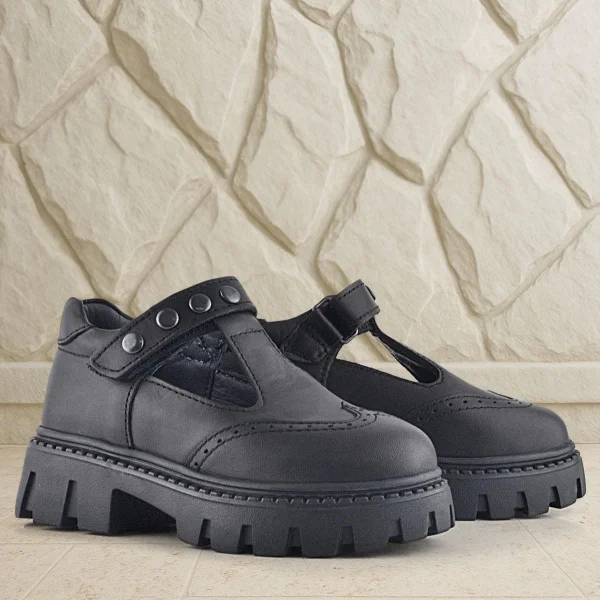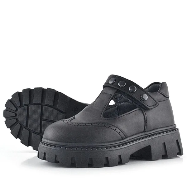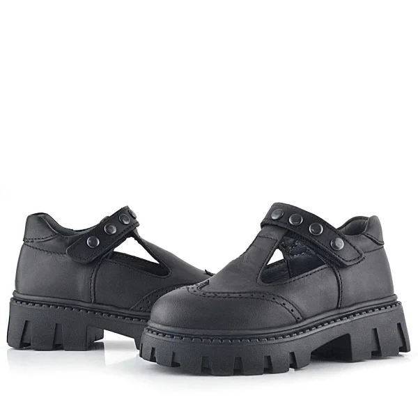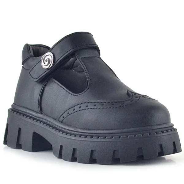 Rakerplus Siyah Mat Cırtlı Toka Detaylı Kız Çocuk Okul Ayakkabı