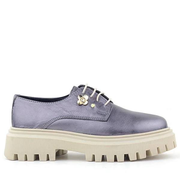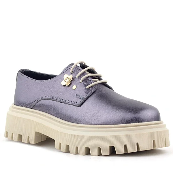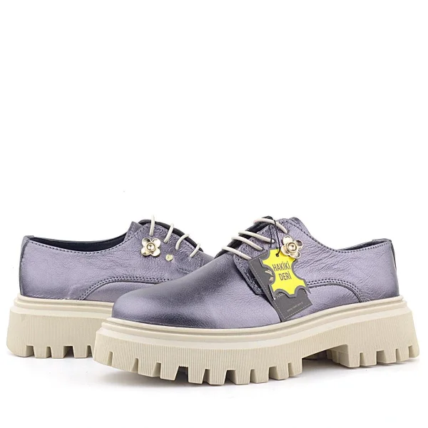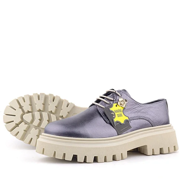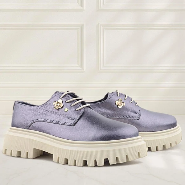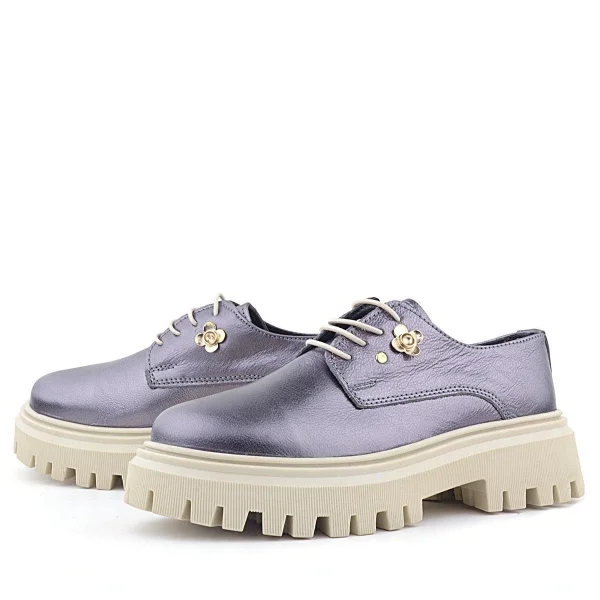 Rakerplus Platin Hakiki Deri Çiçek Detaylı Bağcıklı Oxford Günlük Ayakkabı