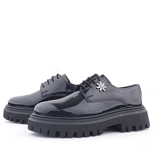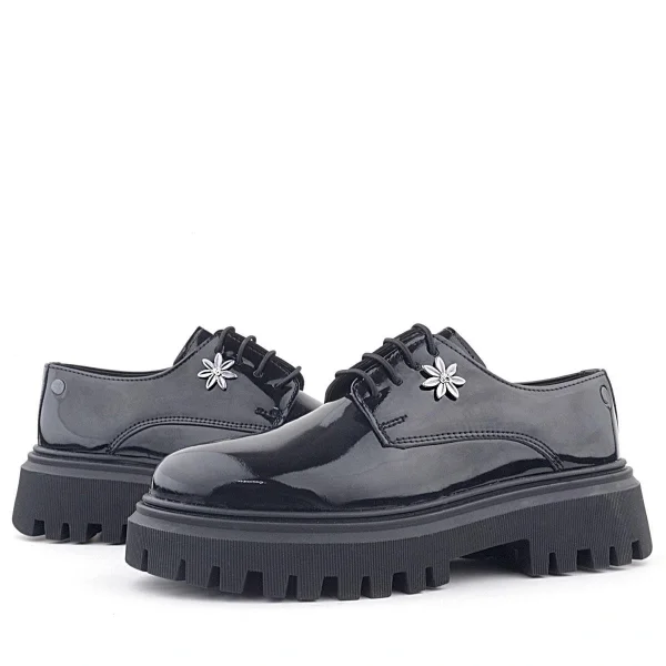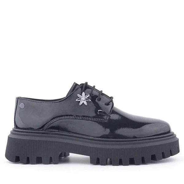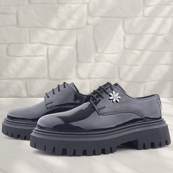 Rakerplus Siyah Rugan Bağcıklı Çiçek Detaylı Oxford Günlük Ayakkabı
