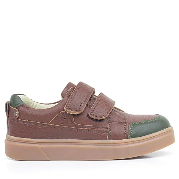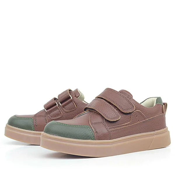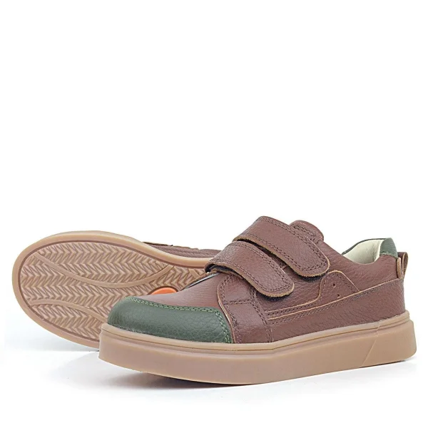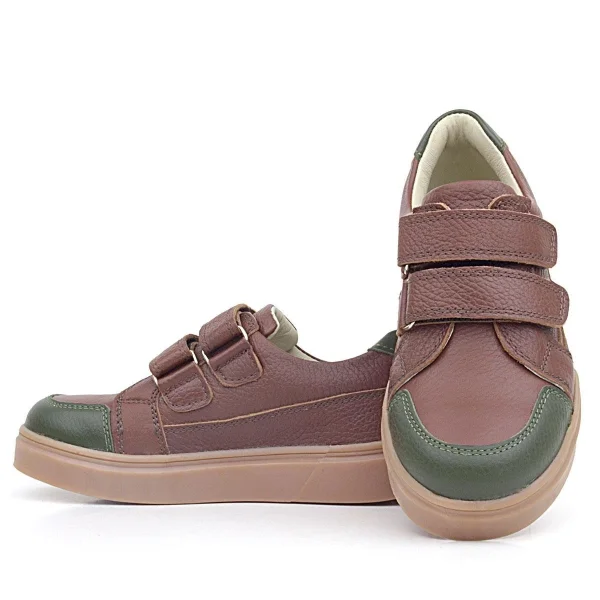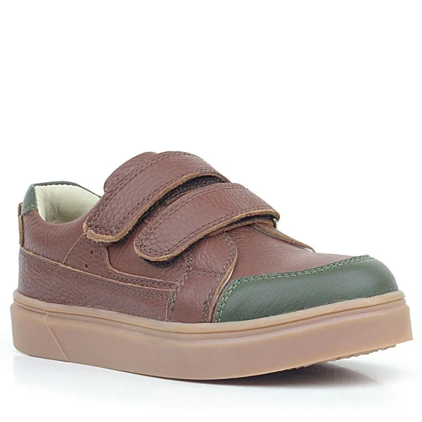 Rakerplus Kahverengi Yeşil Hakiki Deri Cırtlı Kız Çocuk Sneaker Ayakkabı