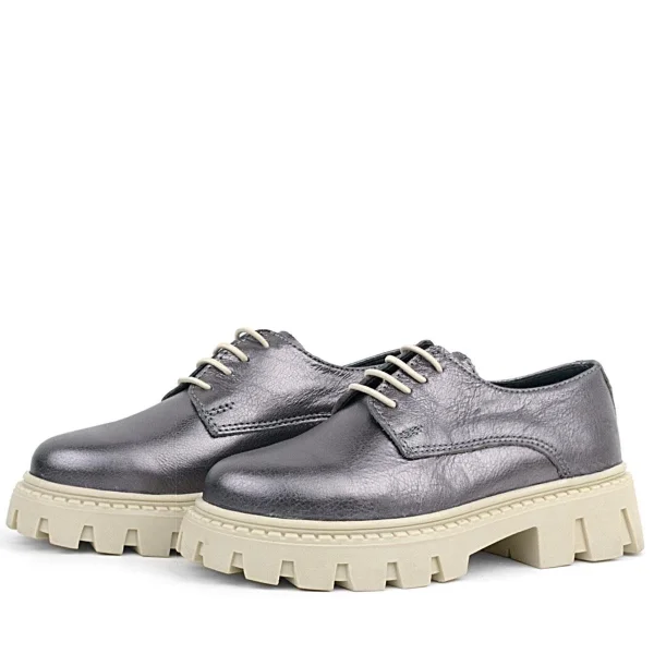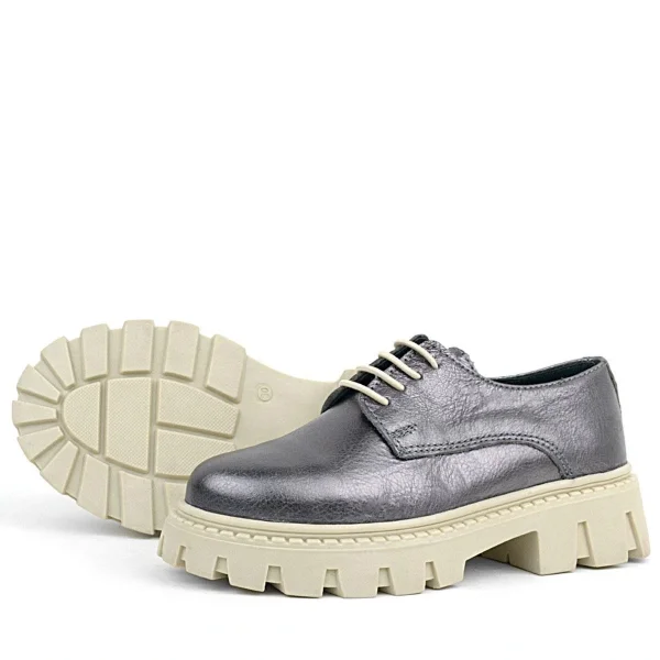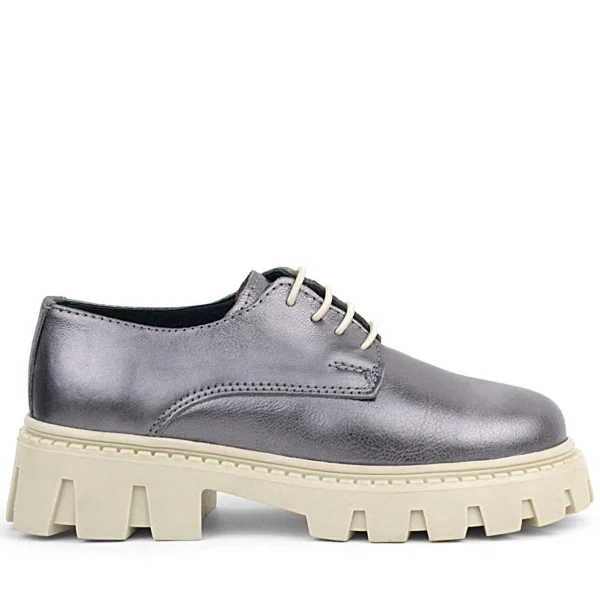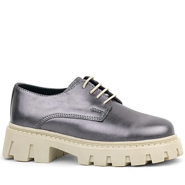 Rakerplus Platin Hakiki Deri Bağcıklı Kız Çocuk Oxford Okul Ayakkabı
