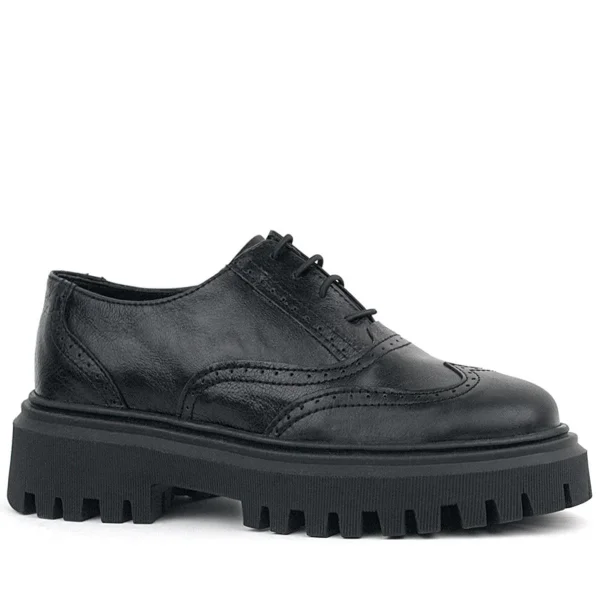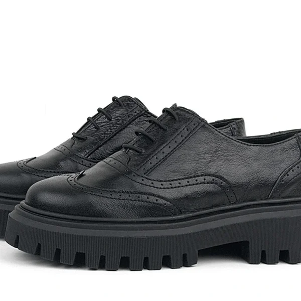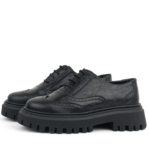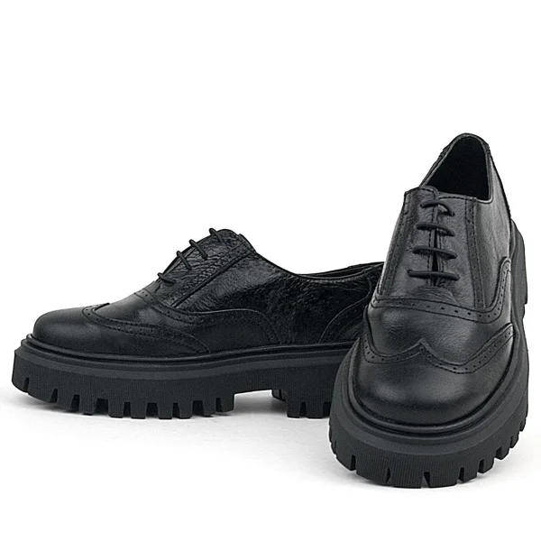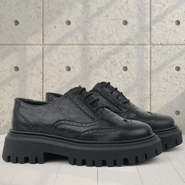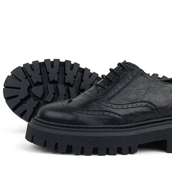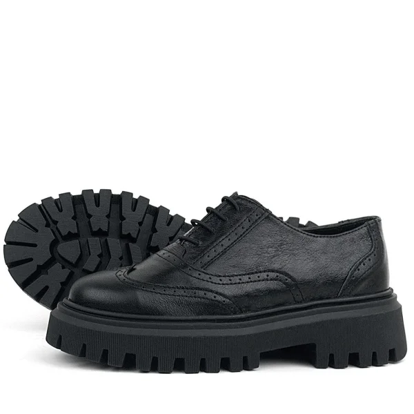 Rakerplus Siyah Kırışık Rugan Hakiki Deri Bağcıklı Oxford Günlük Ayakkabı