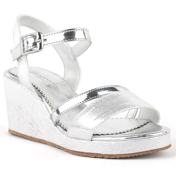 Merida Platin Simli Kalın Topuklu Kız Çocuk Topuklu Ayakkabı