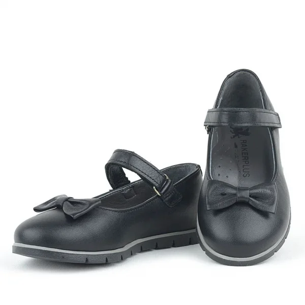 Rakerplus Hakiki Deri Antrasit Lacivert Cırtlı Kız Çocuk Babet