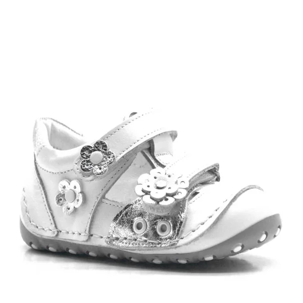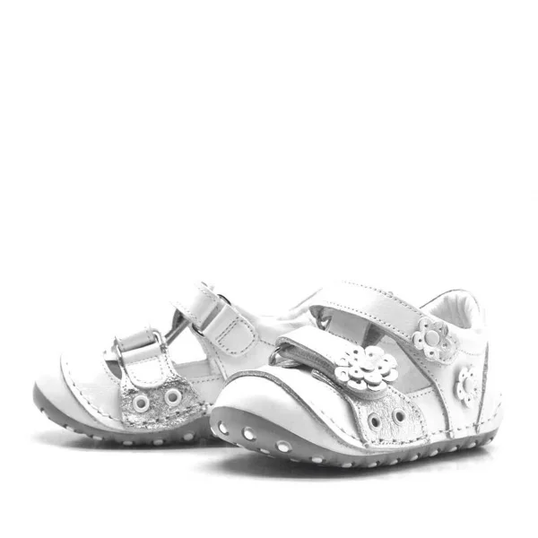 Nino Hakiki Deri Gümüş Beyaz Cırtlı Yazlık İlk Adım Ayakkabı