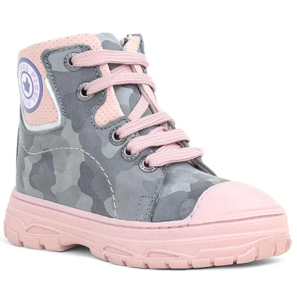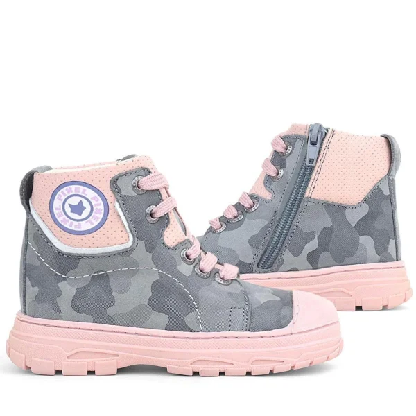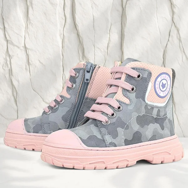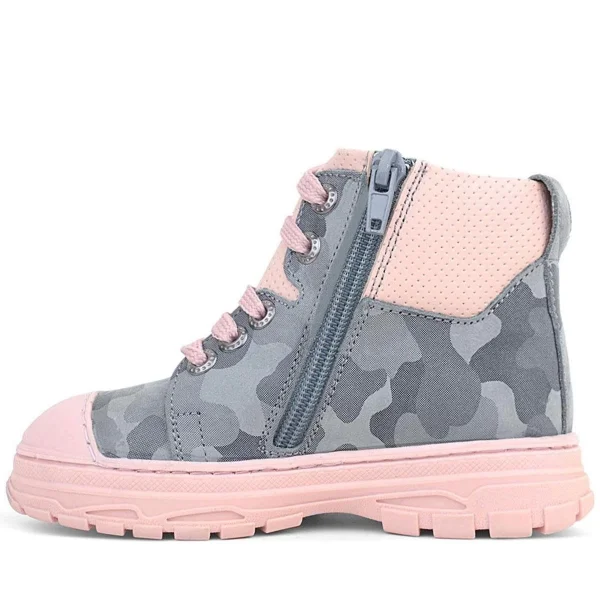 Hakiki Deri Pixel Gri Pudra Kamuflaj Desenli Kız Çocuk Bot