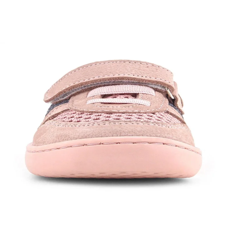 Tam esnek termo tabanı, bebeğin adım atarken zemini doğru şekilde hissetmesini sağlar; böylece ayak hareketleri doğal ve özgür biçimde gelişir. Kaymaz taban yapısı, iç ve dış tüm zeminlerde güvenli kullanım sunar. Pudra, gri ve mor renklerinin yumuşak ve uyumlu kombinasyonu, ayakkabıya modern, sevimli ve zamansız bir görünüm kazandırır. Günlük kullanım için ideal olan bu barefoot bebek sneaker modeli, estetik ve fonksiyonelliği bir arada sunar. Doğru ayak gelişimini desteklemek isteyen ebeveynler için güvenilir ve sağlıklı bir tercihtir.