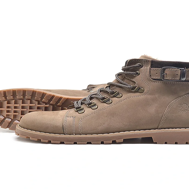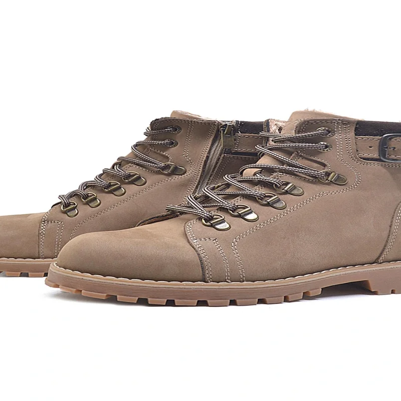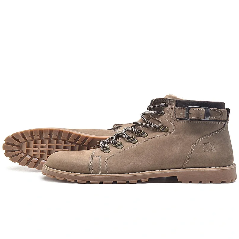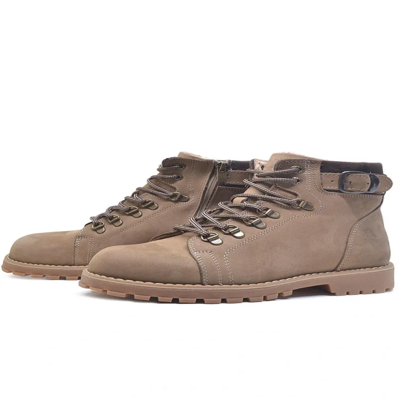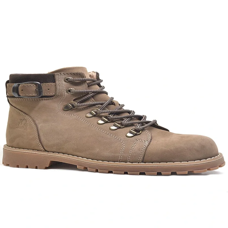 Rakerplus Hakiki Deri Taba Kahverengi Bağcıklı Fermuarlı Kışlık Çocuk Bot