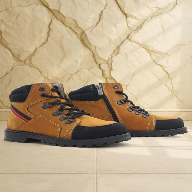 Rakerplus Hakiki Deri Sarı Bağcıklı Fermuarlı Çocuk Bot