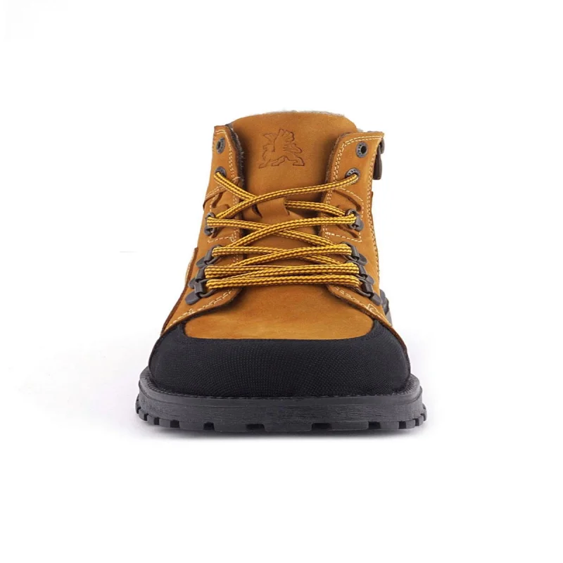Rakerplus Hakiki Deri Sarı Kahve Bağcıklı Fermuarlı Çocuk Bot