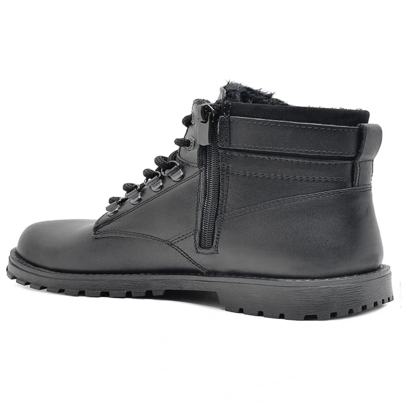 Hakiki Deri Siyah Gerçek Kürklü Bağcıklı Fermuarlı Çocuk Botu
