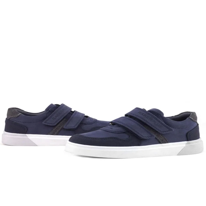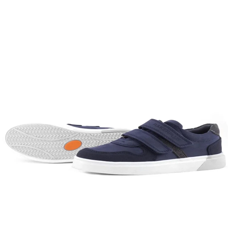 Rakerplus Anatomik Lacivert Nubuk Gri Cırt Cırtlı Hakiki Deri Erkek Çocuk Okul Ayakkabısı ve Çocuk Sneakers