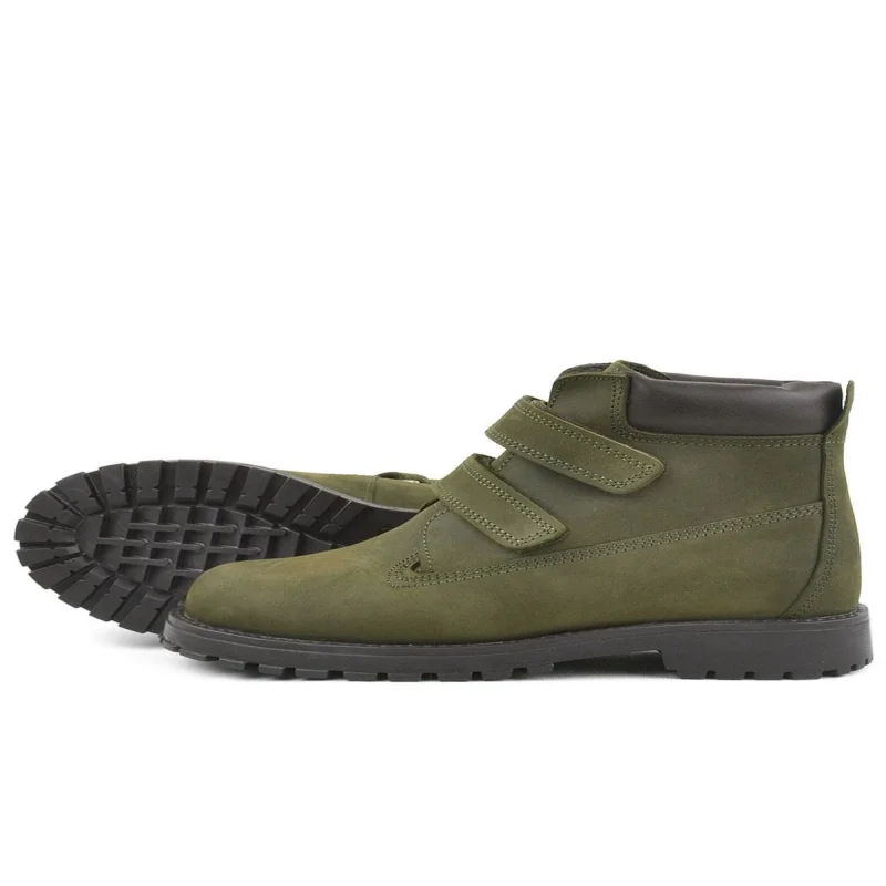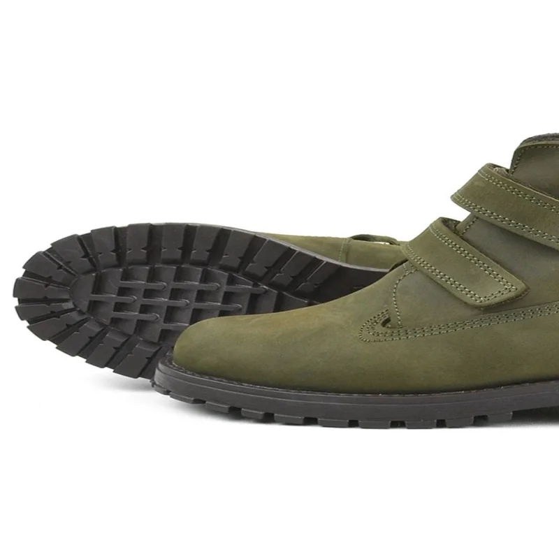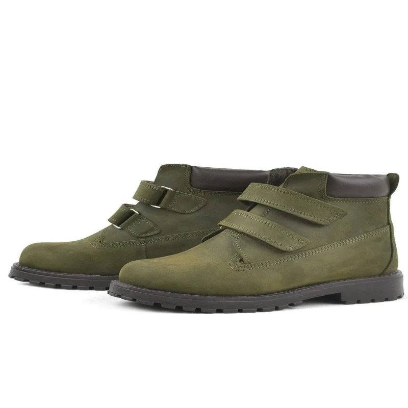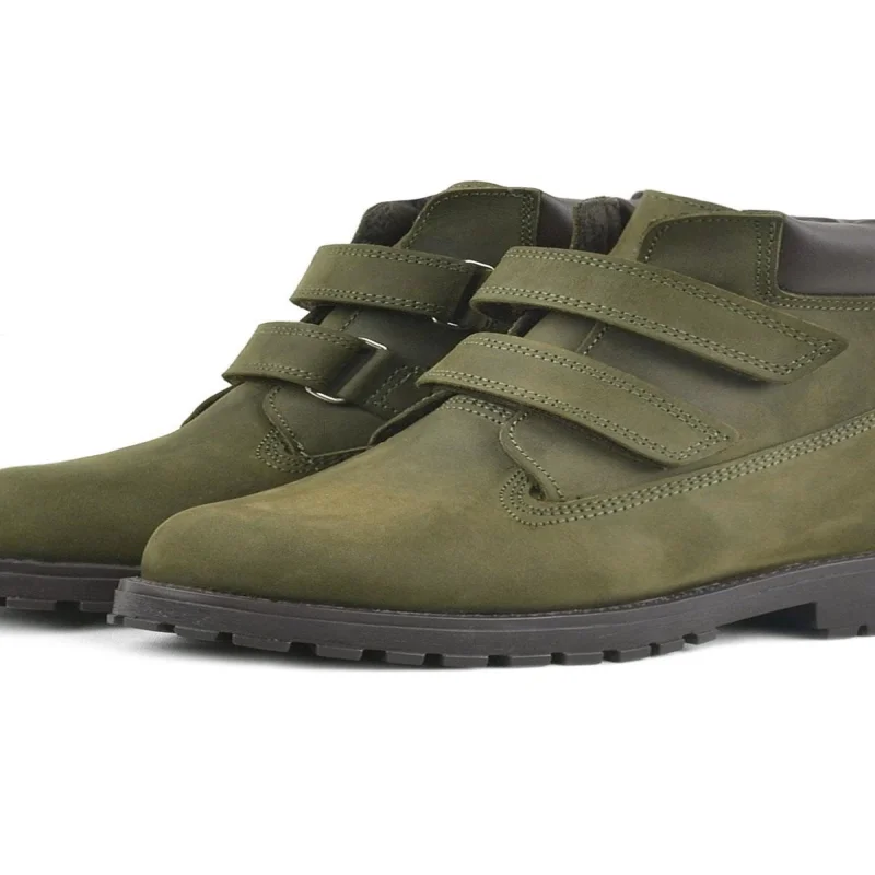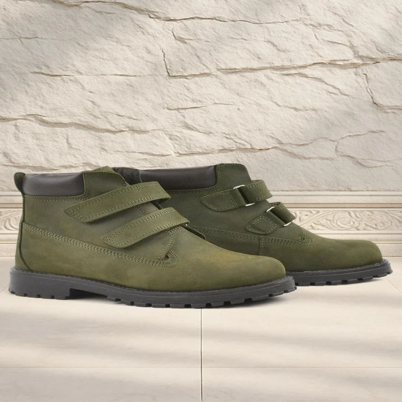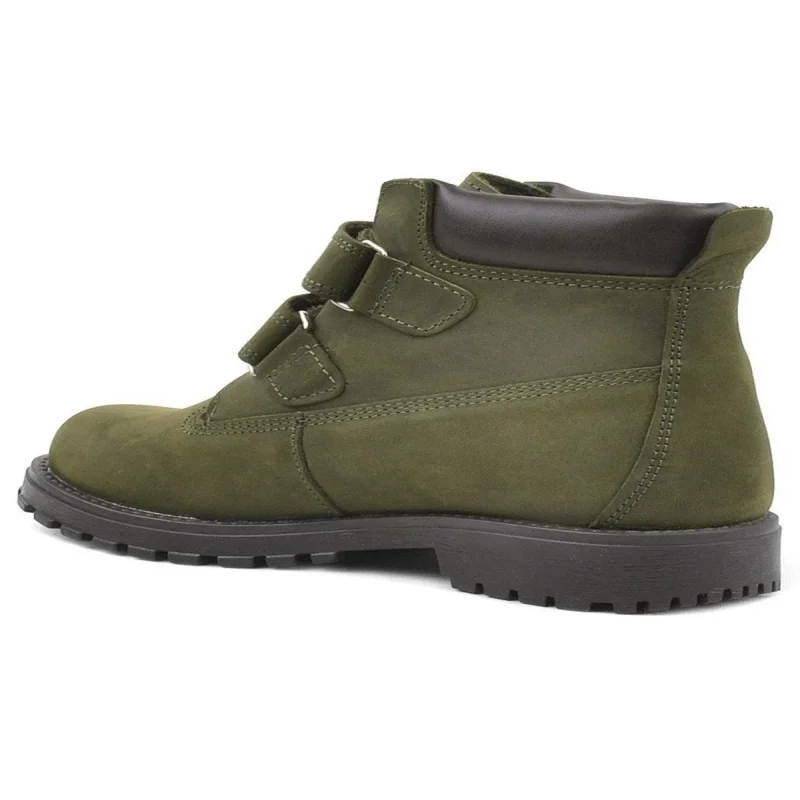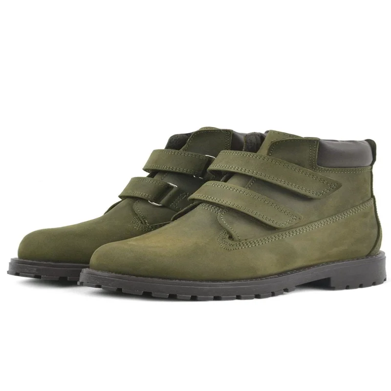 Rakerplus Hakiki Deri Koyu Yeşil Taba Cırt Cırtlı Kışlık Çocuk Bot