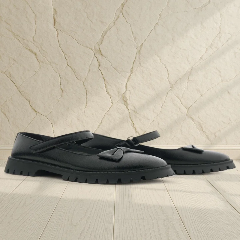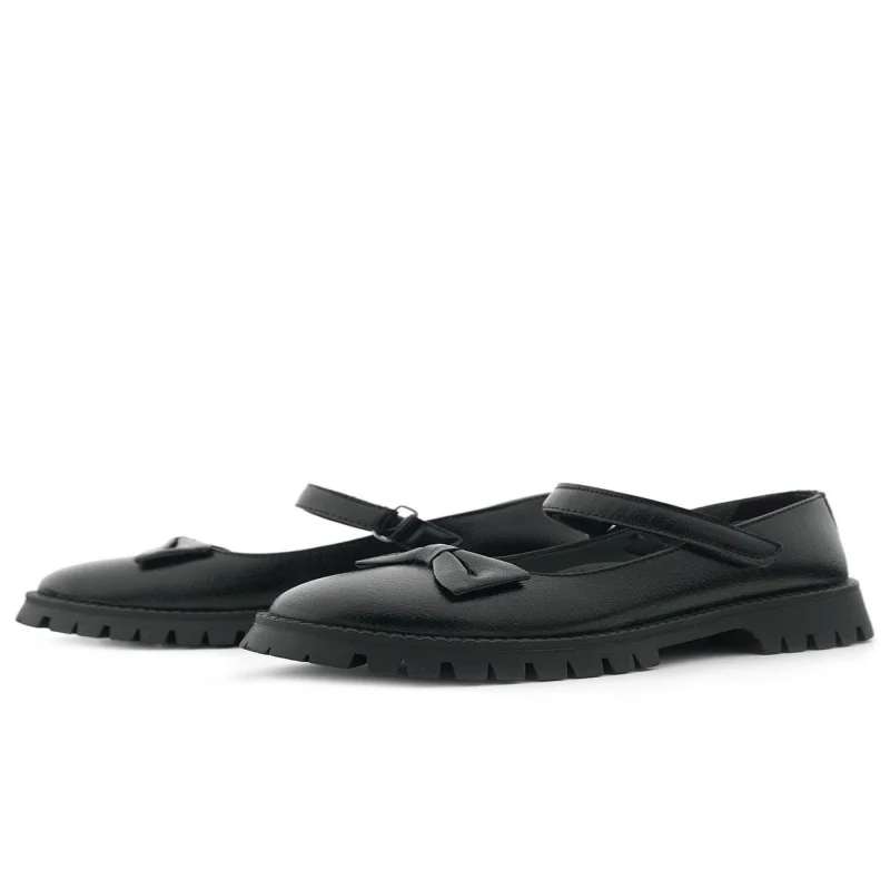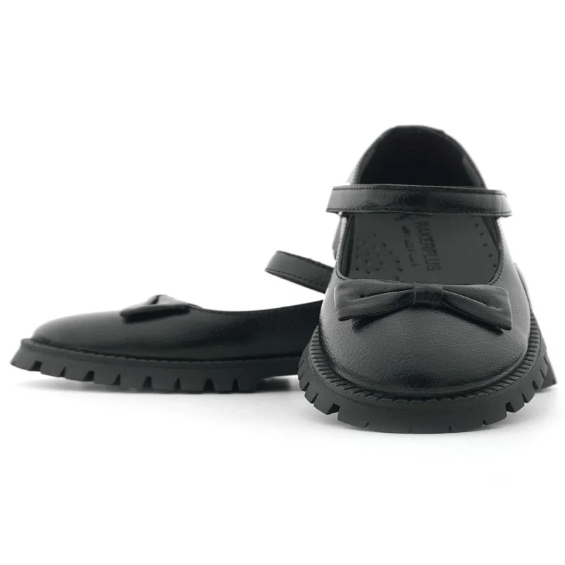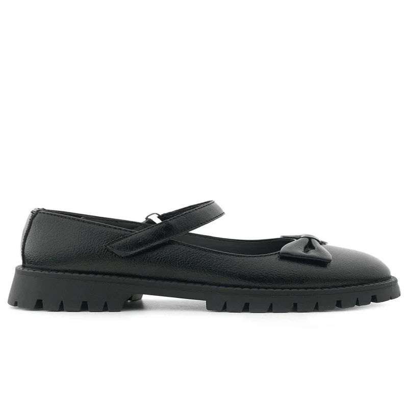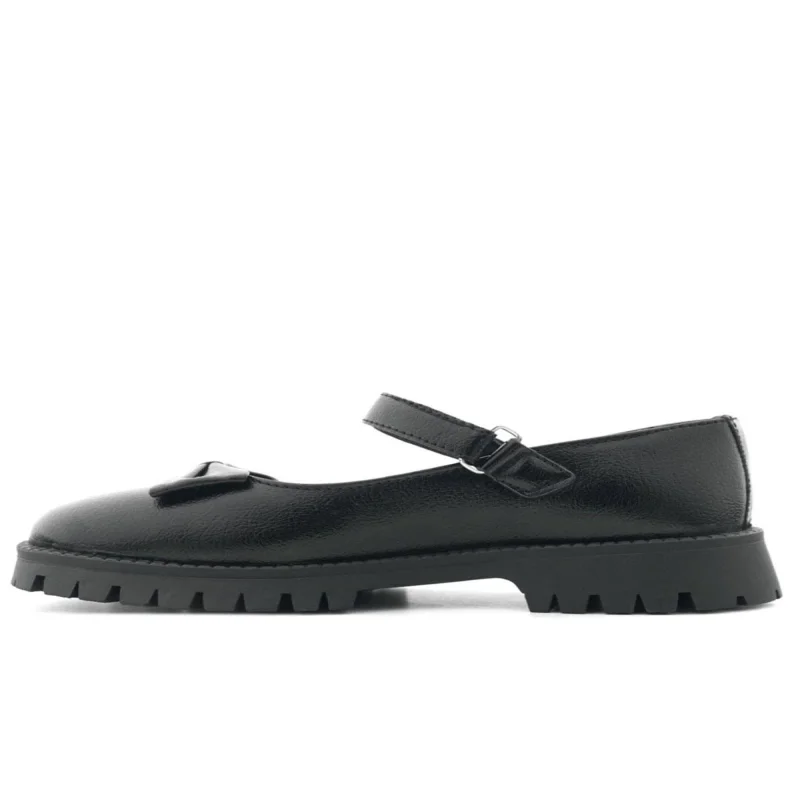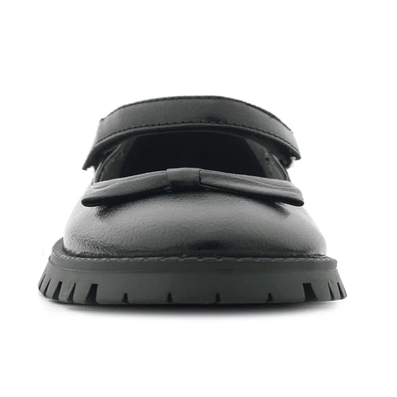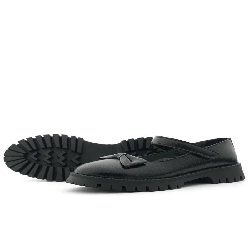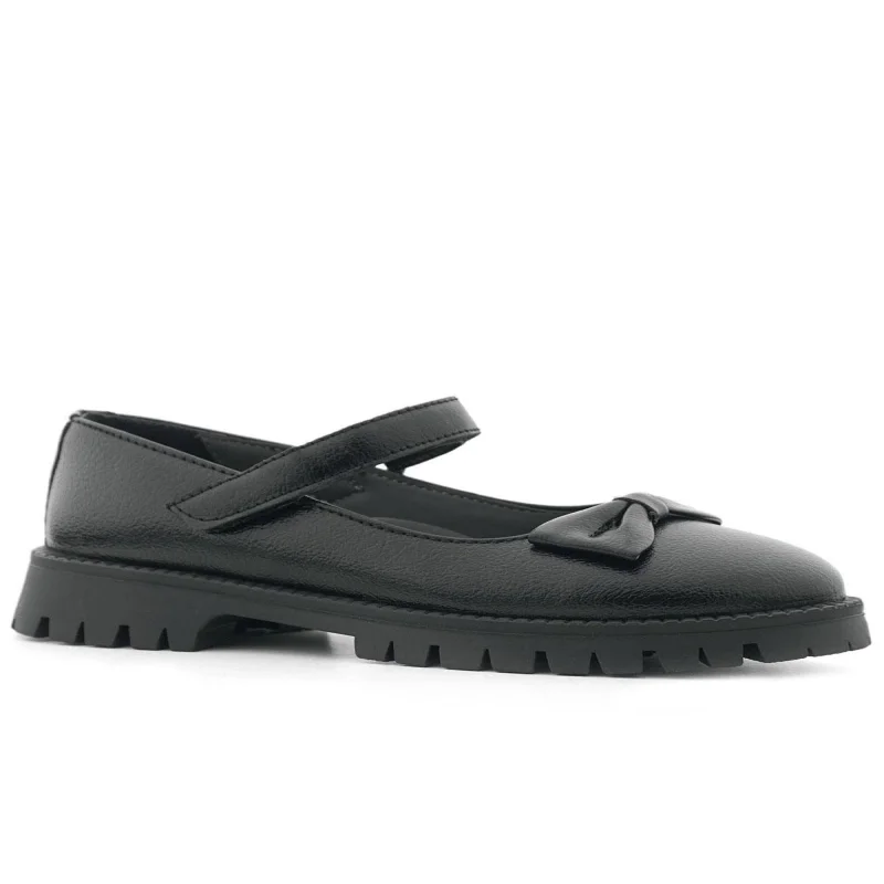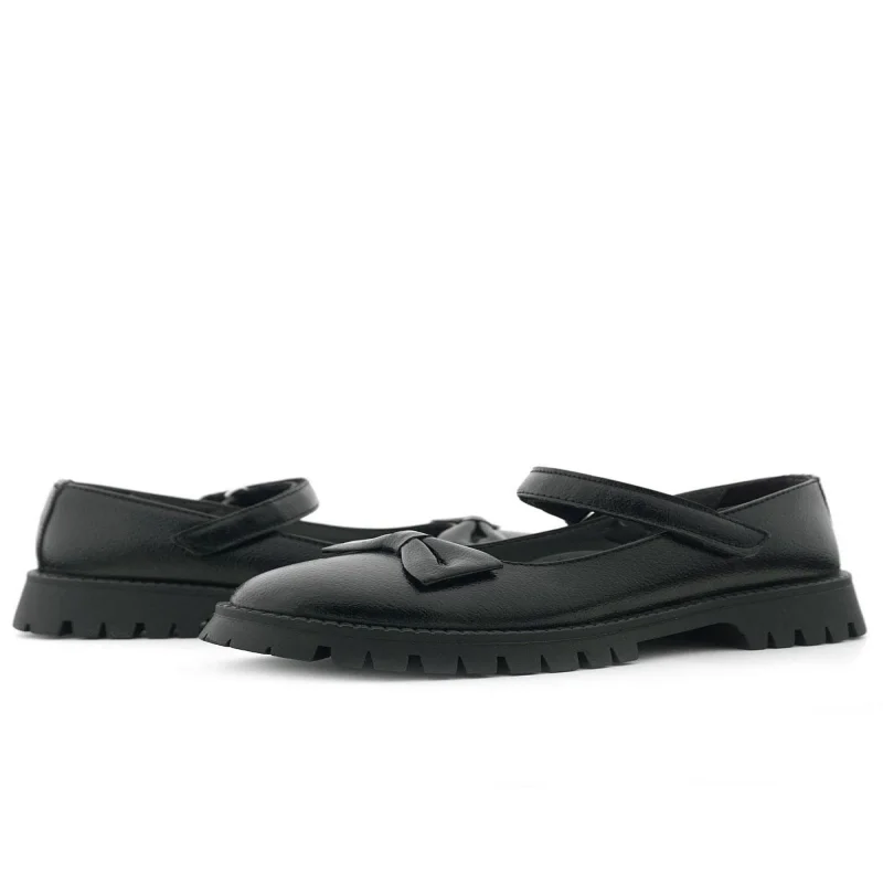 Rakerplus Siyah Kırışık Rugan Kalın Tabanlı Cırtlı Kız Çocuk Babet