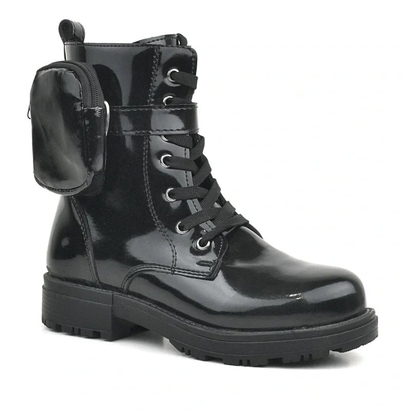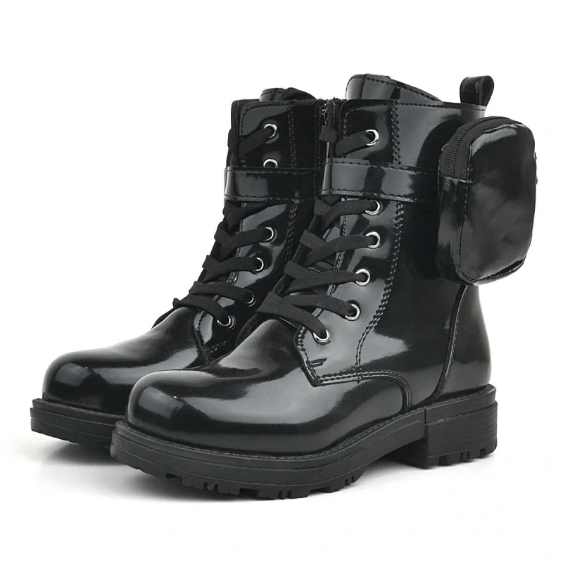 Rakerplus Siyah Rugan Fermuarlı Bağcıklı Cüzdanlı Kız Çocuk Bot