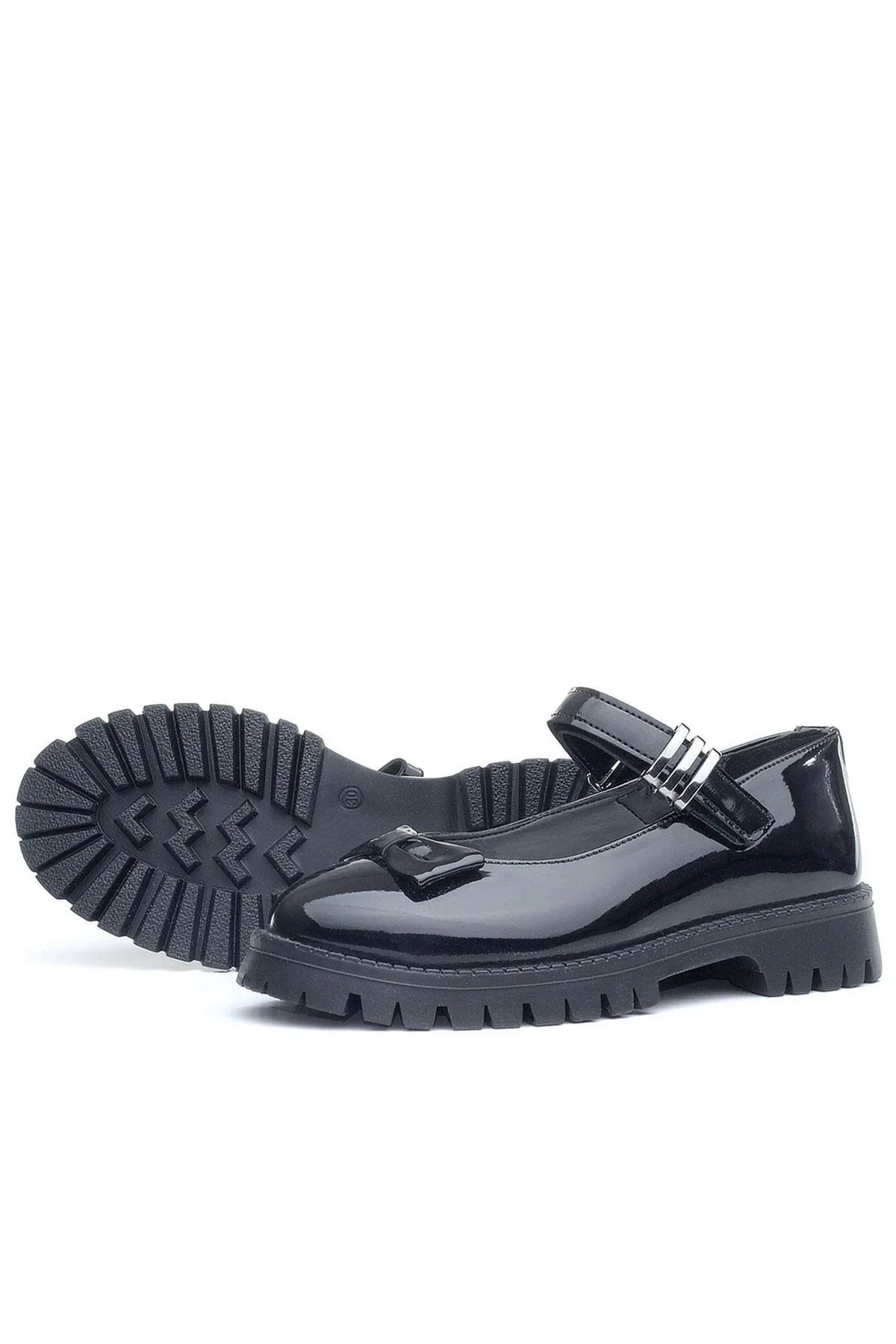 Rakerplus Siyah Rugan Kalın Tabanlı Cırtlı Kız Çocuk Babet Okul Ayakkabı