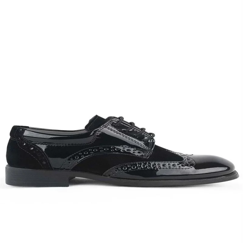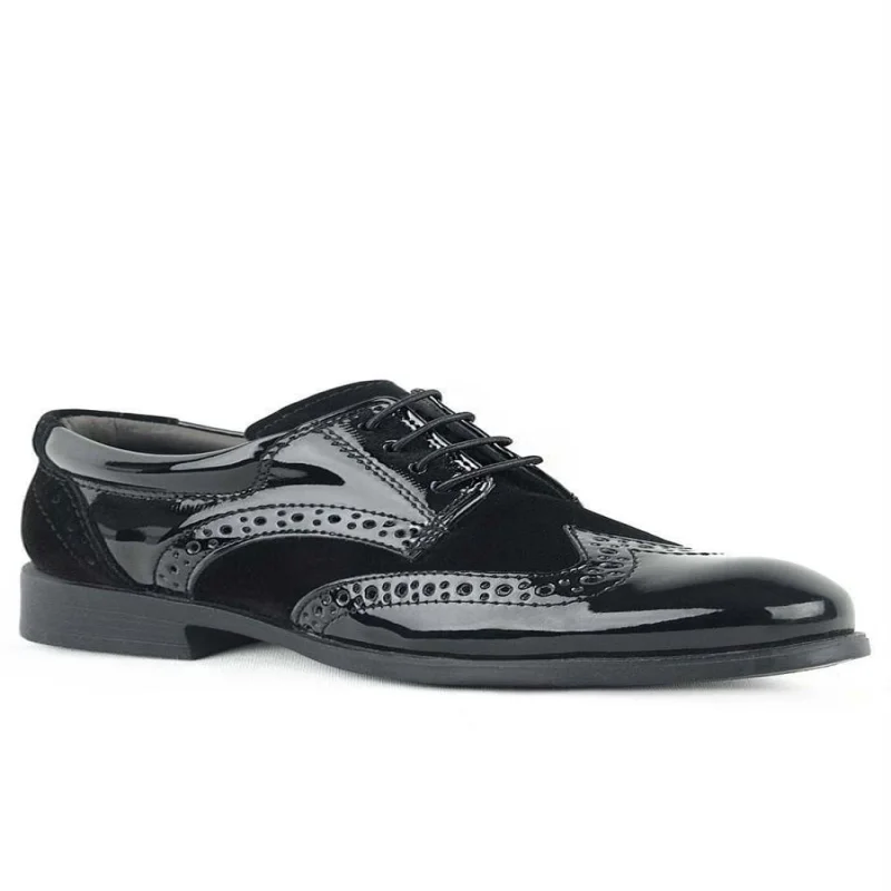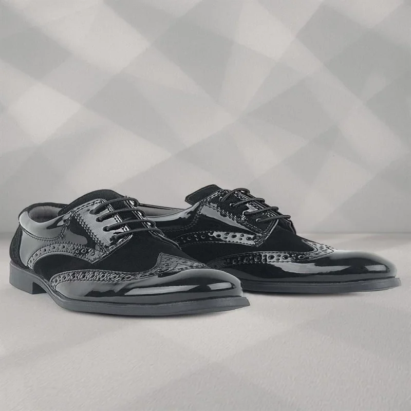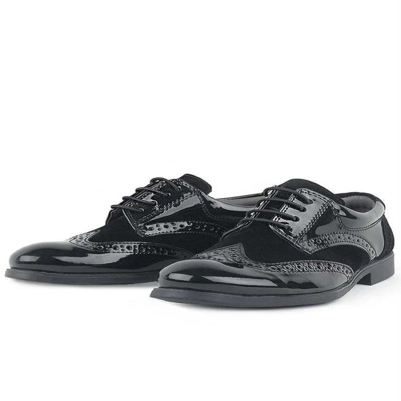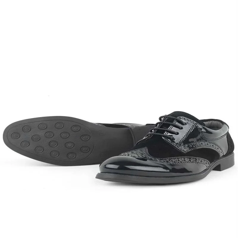 Rakerplus Derby Hakiki Deri Siyah Rugan Siyah Taban Çocuk Klasik Ayakkabı