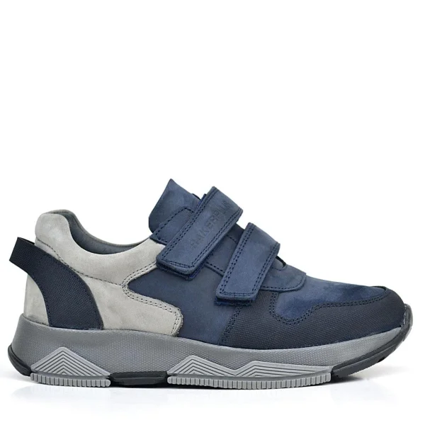 Rakerplus Hakiki Deri Lacivert Cırtlı Gri Tabanlı Çocuk Sneakers Spor Ayakkabı