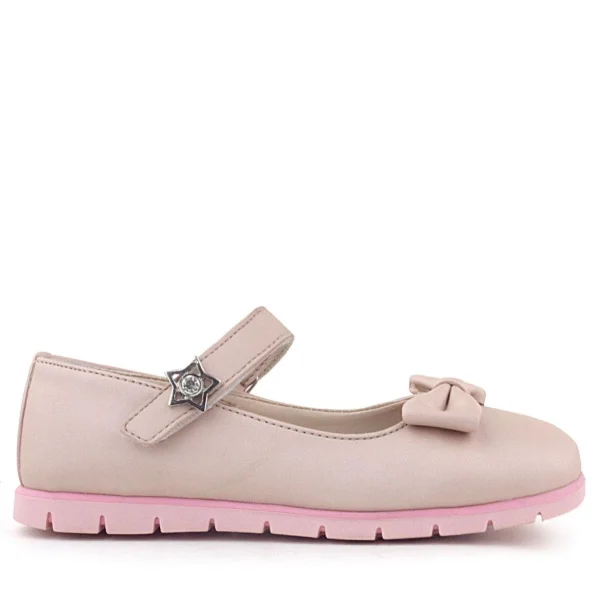 Rakerplus Hakiki Deri Beyaz Cırtlı Pembe Kurdeleli Kız Çocuk Babet